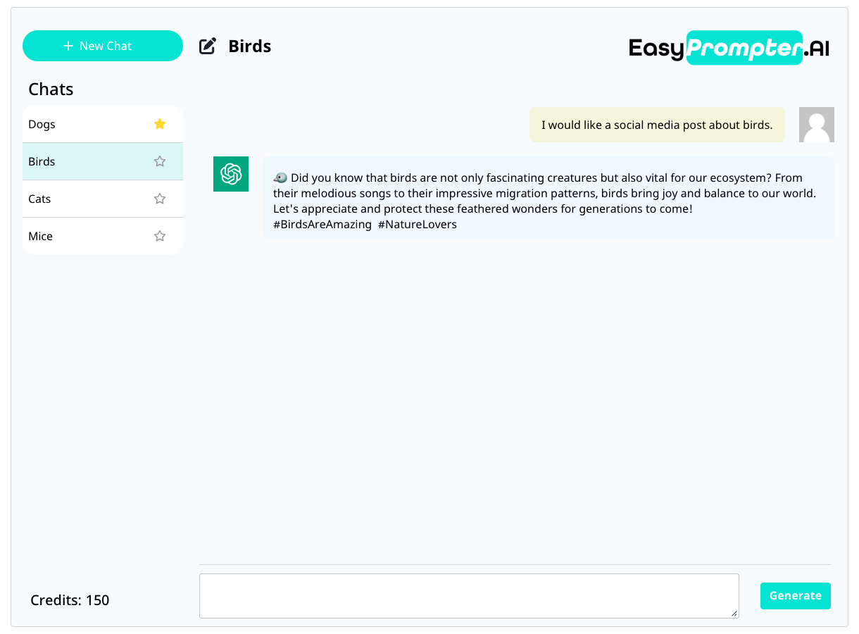 Generated responses are handle in Easy Prompter’s backend, which structures the right questions to ask the AI, and achieve the user’s desired response.