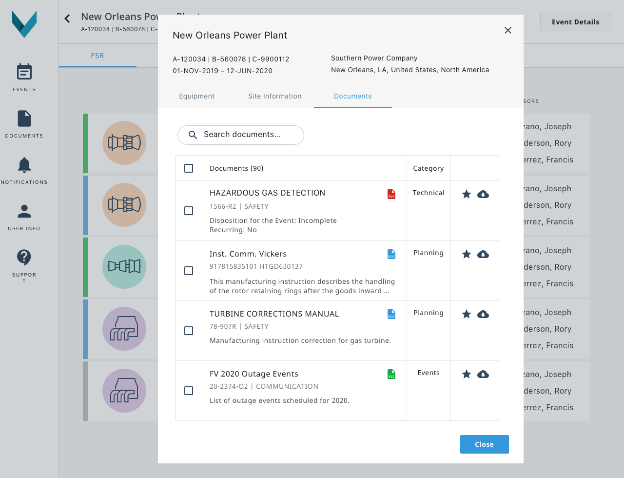 While on the main dashboard, users needed a way to quickly access important site information and documents. This came in the way of a tabular pop-up modal, accessed by selecting the “Event Details” button in the top right hand corner on the dashboard page. The modal would display 3 key areas users expressed needs in.